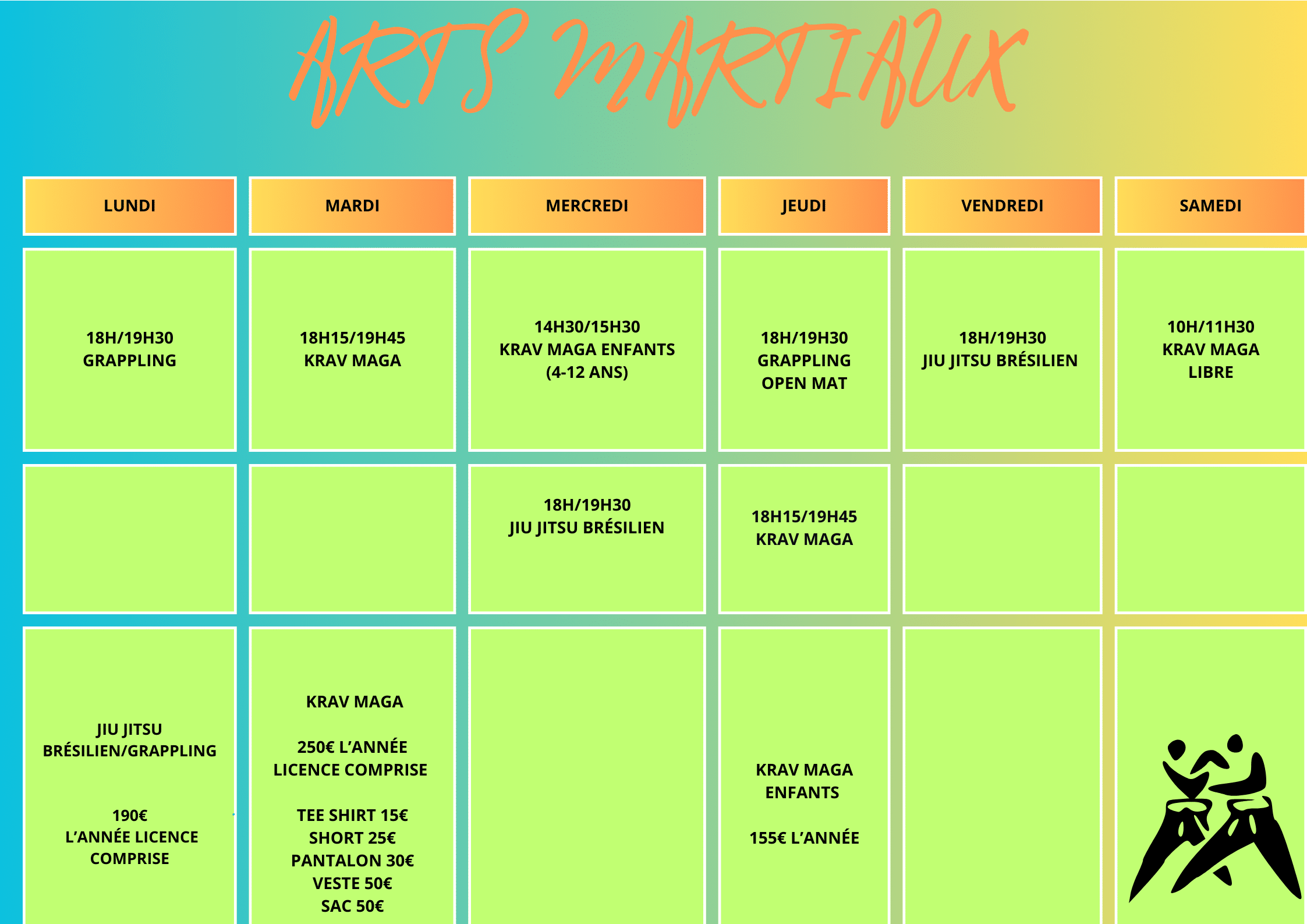 Les cours sont le mercredi et le vendredi de 18h00 à 19h30.
